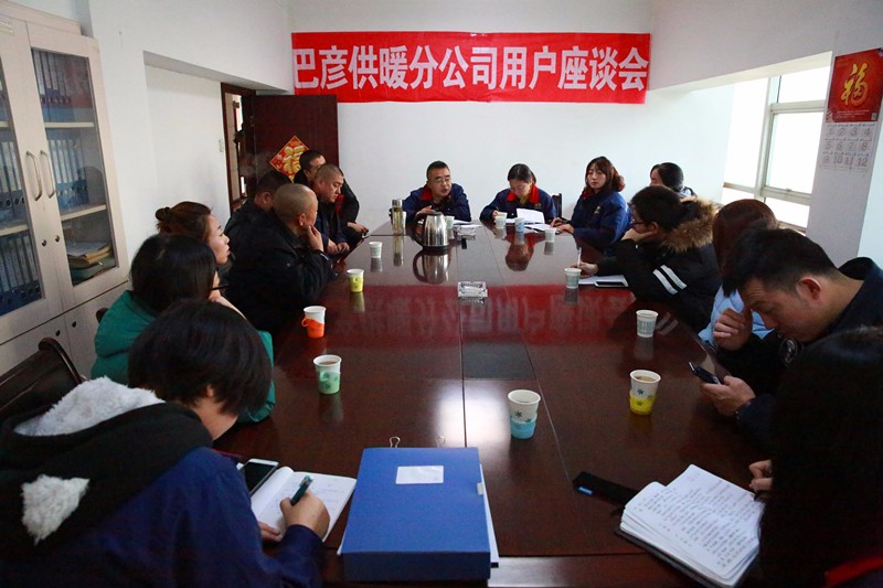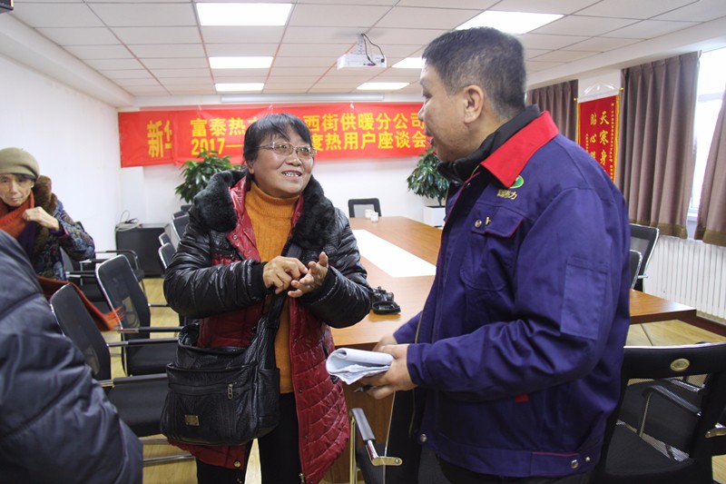 為了深入落實(shí)公司關(guān)于繼續開(kāi)展供熱服務(wù)進(jìn)社區活動(dòng)的部署和要求,12月7日,新華西街供暖分公司、巴彥淖爾北路供暖分公司財大供暖所分別召開(kāi)用戶(hù)代表座談會(huì )。分公司負責人面對面地與用戶(hù)代表進(jìn)行交流溝通,虛心聽(tīng)取他們的意見(jiàn)建議,現場(chǎng)回答了熱用戶(hù)提出的問(wèn)題。