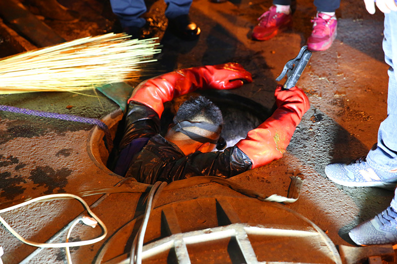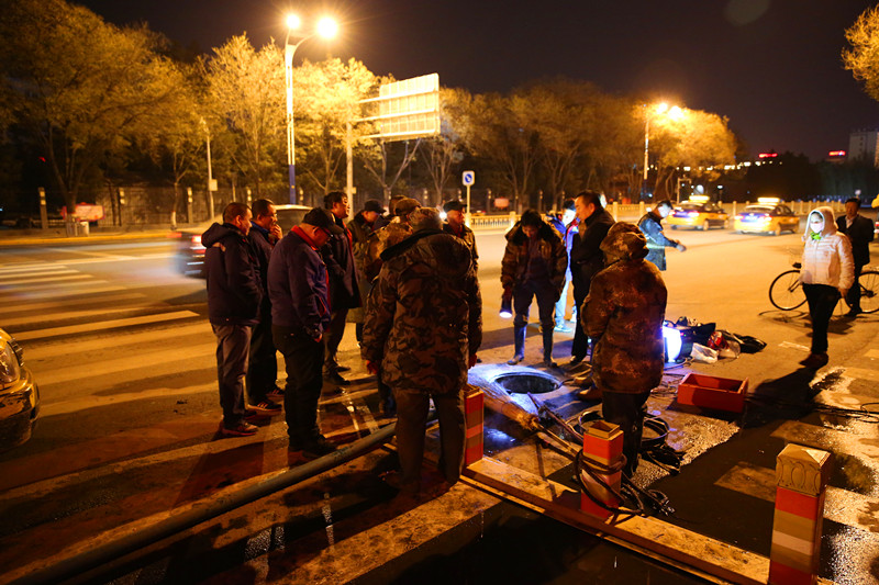 漏點(diǎn)冒出的水溫高達90℃,搶修人員掀起蓋板,用風(fēng)扇向人井內吹風(fēng)降溫,隨后冒著(zhù)被燙傷的危險進(jìn)入人井中搶修,但由于伸縮器和管道都腐蝕嚴重,狹小的空間無(wú)法更換伸縮器。為了保障用戶(hù)的溫暖,用最快的速度排除故障,分公司領(lǐng)導決定破路開(kāi)溝,擴大作業(yè)面,于是及時(shí)調來(lái)的挖掘機一直挖到凌晨4點(diǎn)才拓展出一個(gè)能夠滿(mǎn)足施工要求的空間。